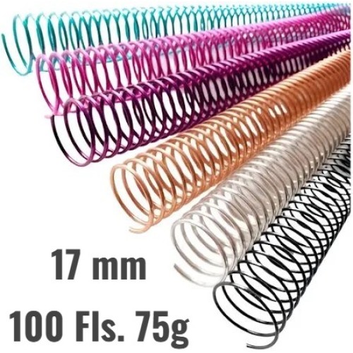 Espiral Metalico - 17mm - em aço p/100 Folhas - Pct 5 unidad..
