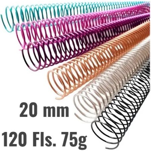 Espiral Metalico - 20mm - em aço p/120 Folhas - Pct 5 unidad..