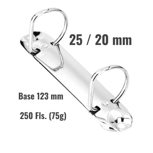Ferragem para Fichario - 2 Argolas D | 25/20 MM | BASE 123