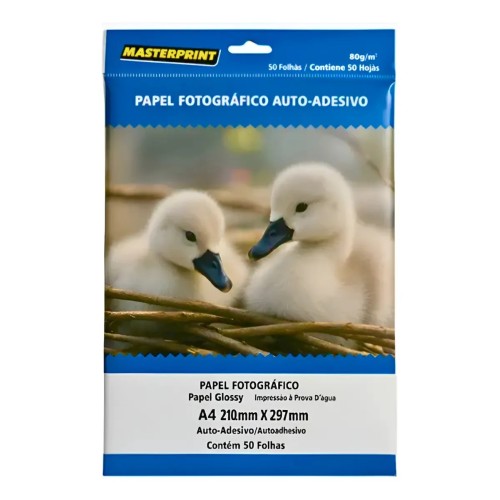 Papel Glossy Adesivado A4 - 80gr - 115gr - 130gr ( Mastreprint ) - Pacote 50 folhas - Fotográfico Brilho