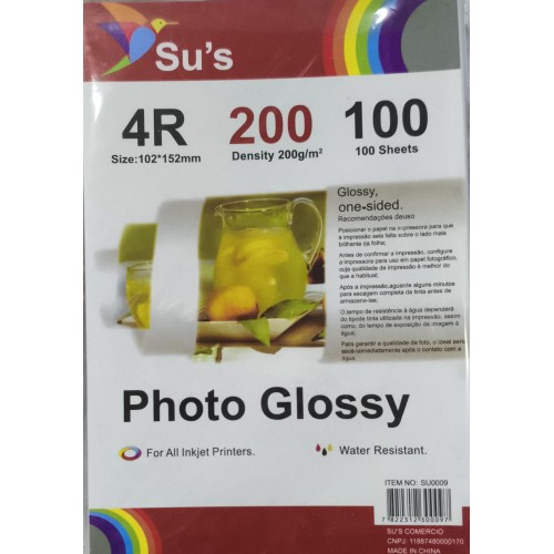 Papel Glossy 10x15 - 200gr - 100 folhas - Fotográfico BrilhoDicas: Serve para imprimir Apenas para Tinta Corante - Resistente a Aguá