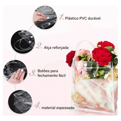 Sacola Presente Plastica PVC Transparente 20x20x8 - Média ( 5 ou + no PIX R$ 3,00 cada)